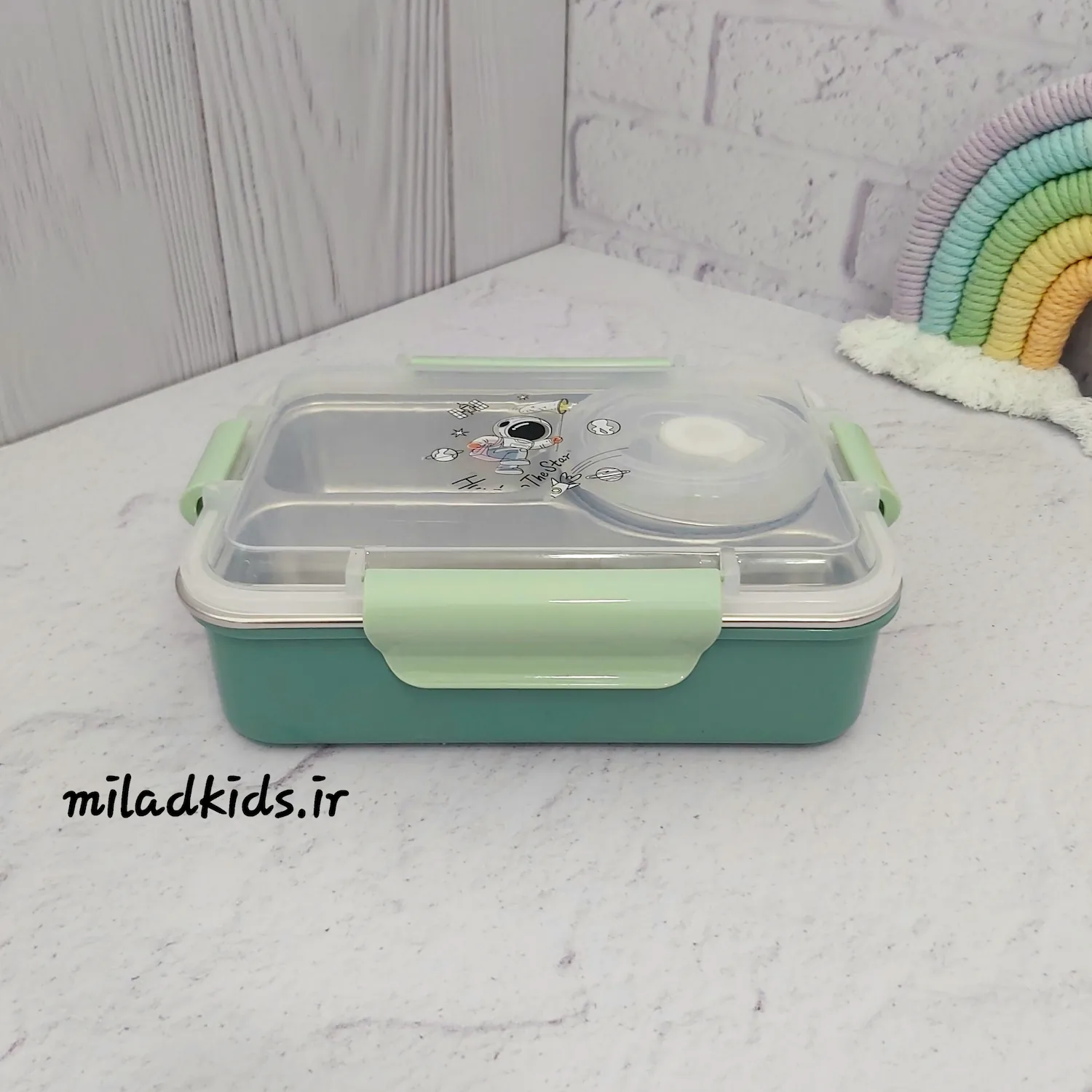 ظرف غذای استیل سهقسمتی طرح فضانورد – کاربردی، ایمن و دوستداشتنی!
