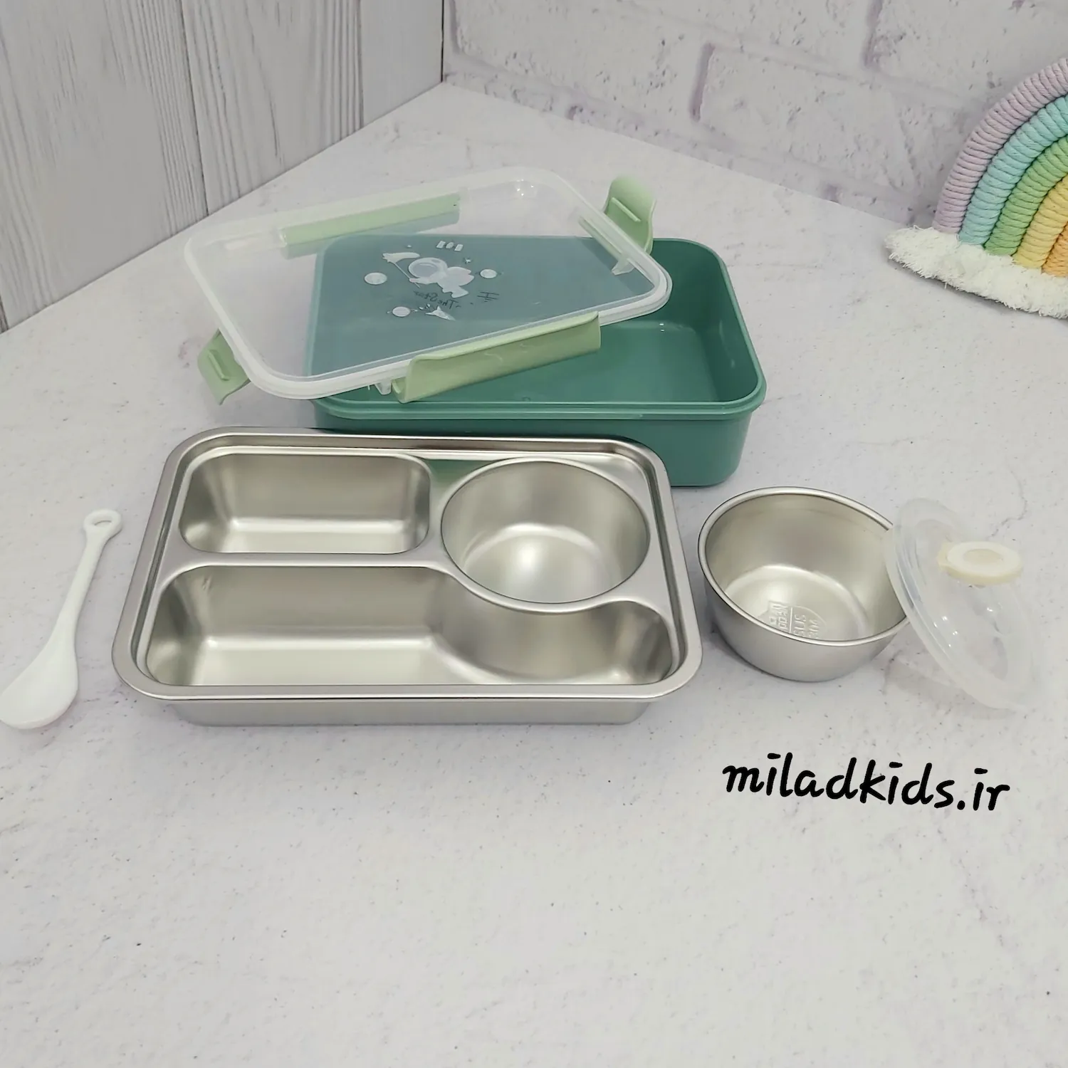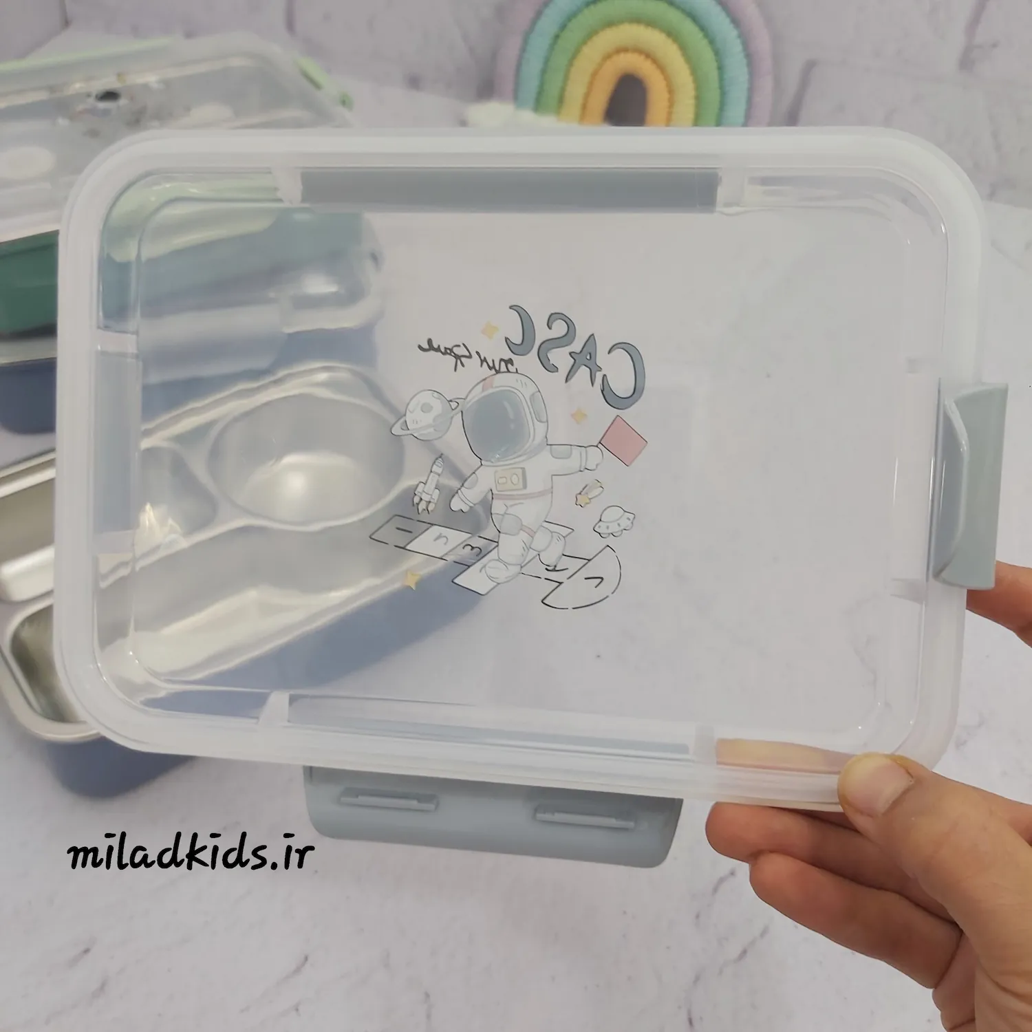 ظرف غذای چند بخشی استیل کودک طرح فضانورد، انتخابیه که هم از نظر ایمنی و کیفیت خیالتون راحته و هم از نظر طراحی و کارایی، فوقالعادهست. با قفلهای محکم، استیل بادوام و طرح جذاب، همراهی مطمئن برای روزهای مدرسه و سفر کودک شما خواهد بود.