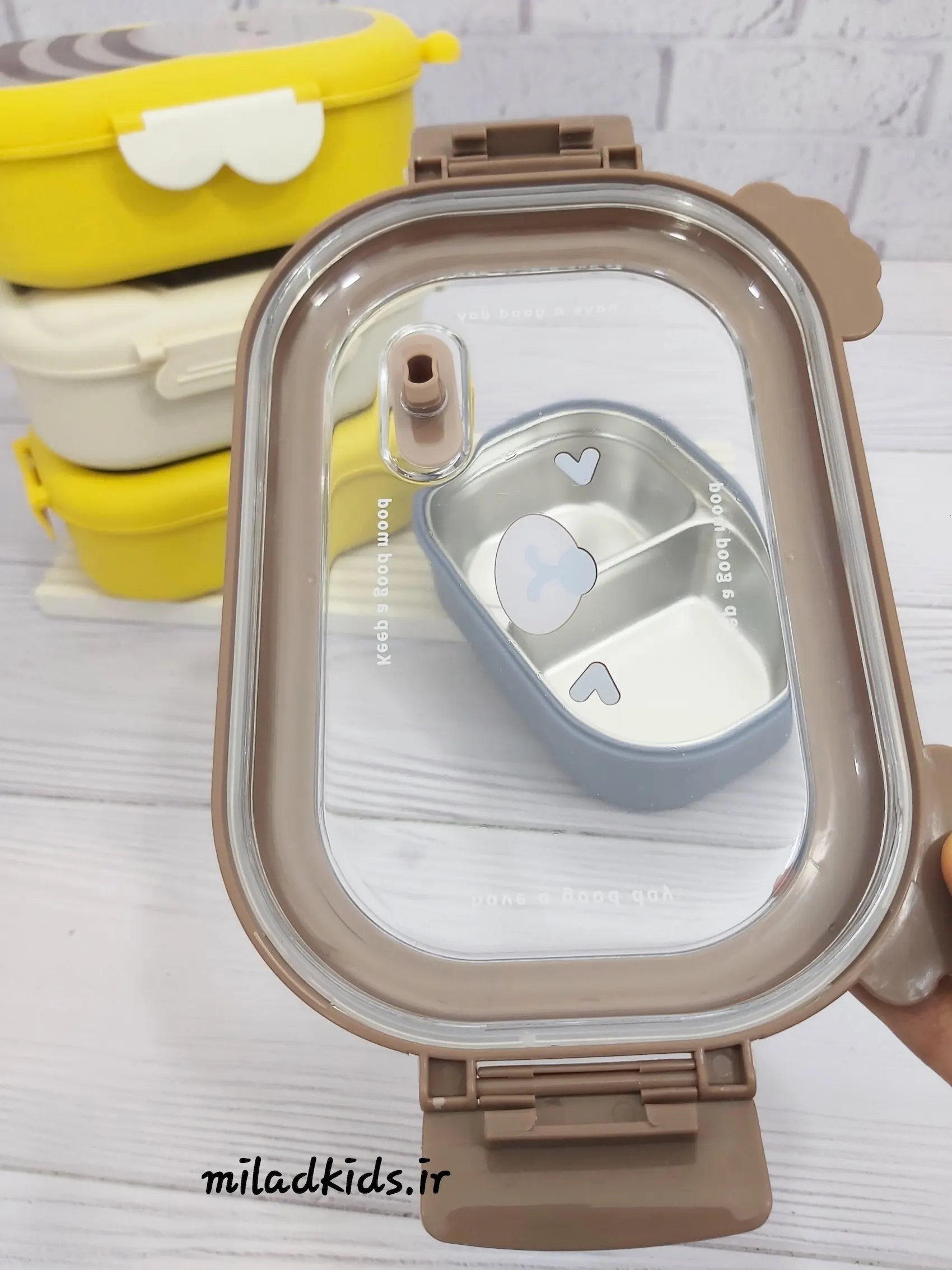 تقسیمبندی دو بخشی این ظرف، غذاها رو جدا نگه میداره — مثلاً برنج یه طرف، خورشت یا میوه یه طرف دیگه. این نظم توی ظرف غذا، مورد علاقهی خیلی از بچههاست.